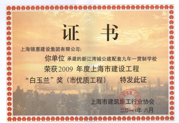 當前位置:主頁(yè) > 企業(yè)榮譽(yù) > 企業(yè)榮譽(yù) >新江灣城公建配套九年一貫制學(xué)校(白玉蘭)