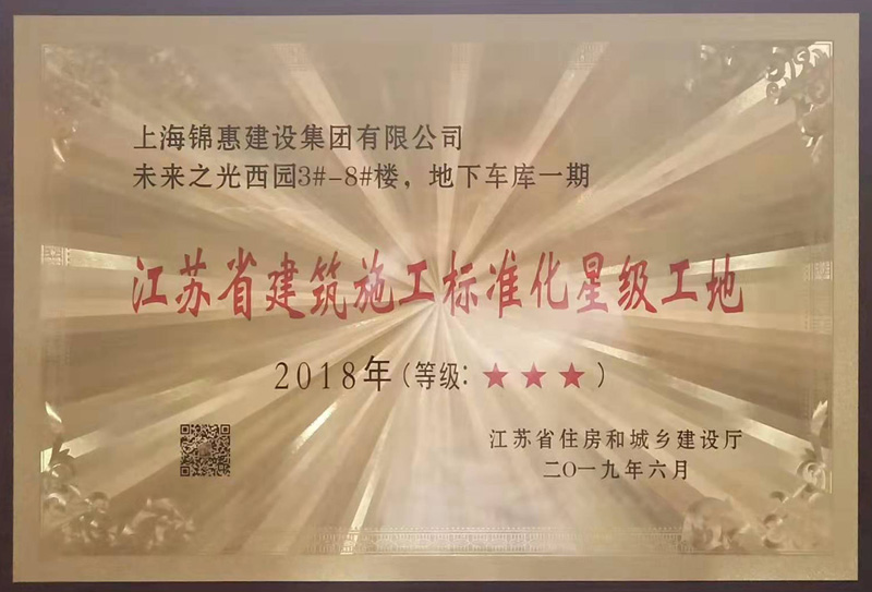 近日,上海錦惠建設集團有限公司承建的宿遷萬(wàn)科未來(lái)之光西園3#-8#樓,地下車(chē)庫一期項目獲評“2018年江蘇省建筑施工標準化三星級工地”。
