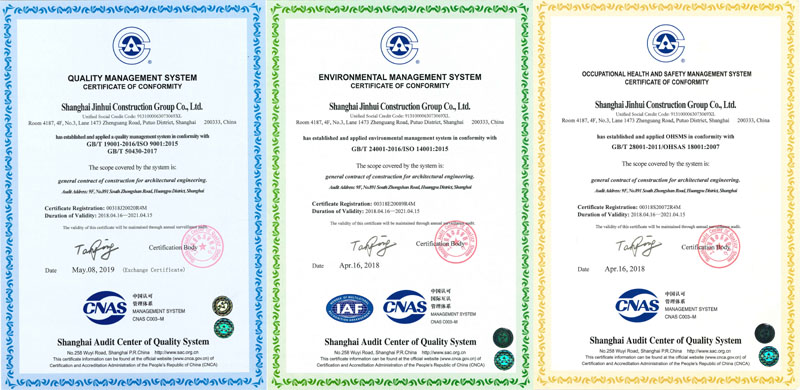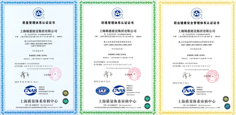 2020年8月,上海質(zhì)量體系審核中心對上海錦惠建設集團有限公司的質(zhì)量、環(huán)境、職業(yè)健康安全“三標一體化”管理體系運行情況進(jìn)行了細致而全面的監督審核,一致認為我公司總體三標體系運行情況較好,順利通過(guò)審核,這也是繼換發(fā)新版證書(shū)后通過(guò)的第二次監督審核。