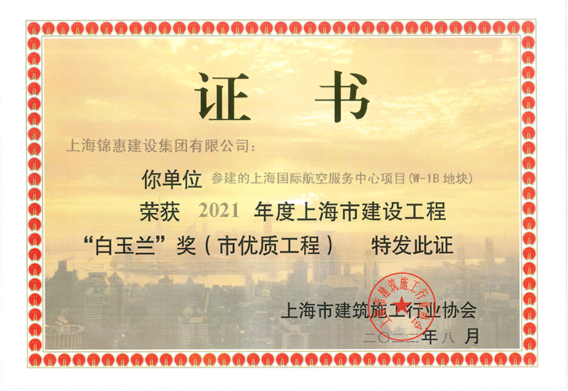 近日,由上海市建筑施工行業(yè)協(xié)會(huì )組織的2021年度上海市建設工程“白玉蘭”獎(市優(yōu)質(zhì)工程)評選活動(dòng)圓滿(mǎn)落幕。上海錦惠建設集團參建的上海國際航空服務(wù)中心(W-1B地塊)、前灘10-01地塊辦公及住宅項目(3#樓)和(6#樓)、臨港國際會(huì )議中心(一期)新建項目榜上有名。其中,上海國際航空服務(wù)中心項目(W-1B地塊)還同時(shí)榮獲了白玉蘭獎?dòng)^摩工程榮譽(yù)稱(chēng)號。