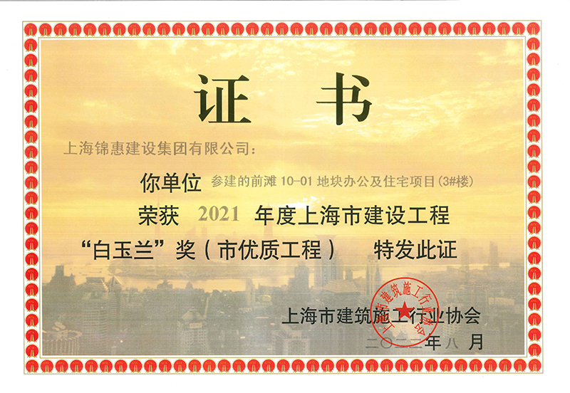 據悉,上海錦惠建設集團連續多年在“白玉蘭”獎評選活動(dòng)中榜上有名,在上海建筑施工行業(yè)中始終保持良好的口碑。