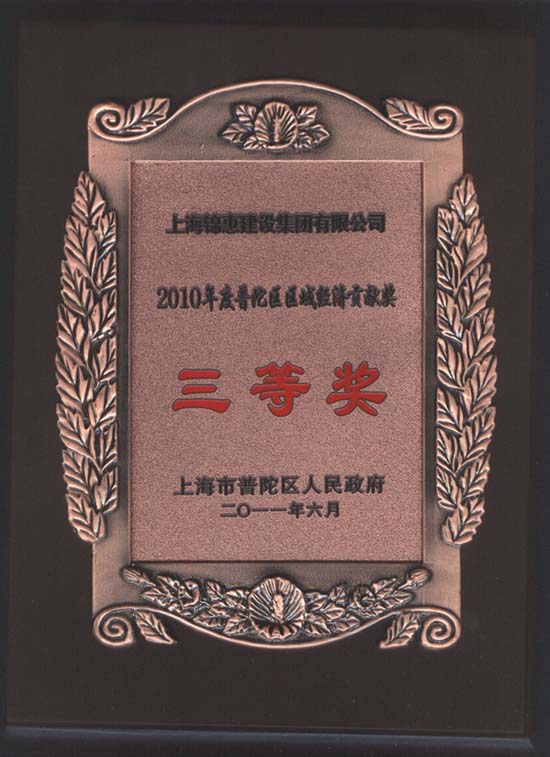 2010年,面對復雜多變的國內外經(jīng)濟環(huán)境,上海錦惠建設集團有限公司在經(jīng)濟和社會(huì )事業(yè)發(fā)展中取得了良好的業(yè)績(jì),榮獲普陀區人民政府6月22日授予的2010年度普陀區區域經(jīng)濟貢獻獎三等獎。