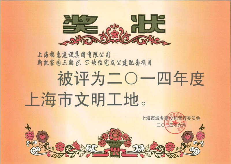 當前位置:主頁(yè) > 新聞動(dòng)態(tài) > 新聞動(dòng)態(tài) >“新凱家園三期C、D塊住宅及公建配套項目”獲2014年度“上海市文明工地”稱(chēng)號